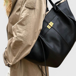 El bolso Lucía, confeccionado en cuero sintético estructurado, combina una silueta elegante con un interior espacioso y bolsillo ranurado para mantener tus esenciales organizados.