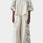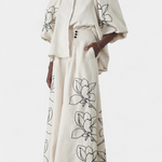 El conjunto Helen combina una blusa de mangas globo y pantalones anchos en algodón y lino, creando una silueta fluida y fresca, ideal para días cálidos. El estampado floral aporta un toque alegre y moderno, perfecto para ocasiones casuales o con estilo especial.